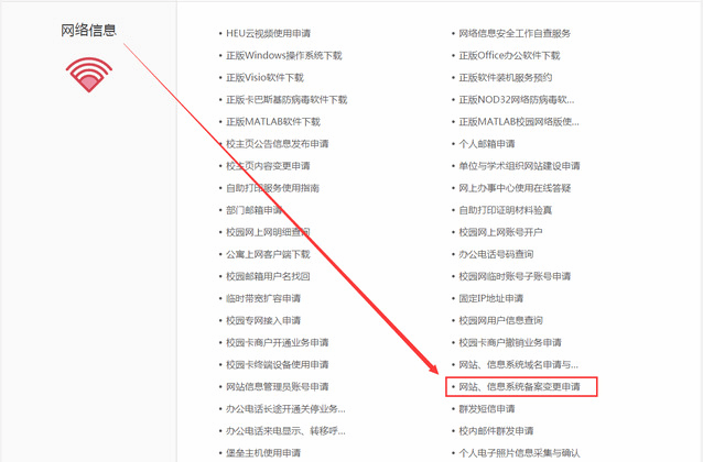 2.登录后,在“网络信息”下点击“网站、信息系统备案变更申请”,按步骤进行操作。