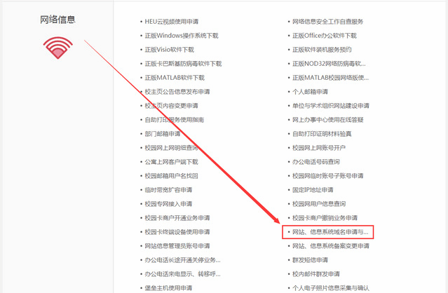 2.登录后,在“网络信息”下点击“网站、信息系统域名申请与备案”,按步骤进行操作。